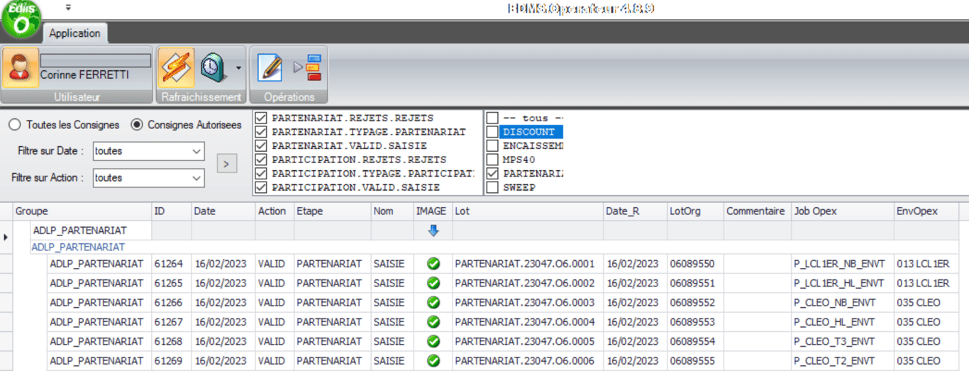 Cliquer 2 fois sur le module PROD Opérateur et affichage des lots DISCOUNT par défaut