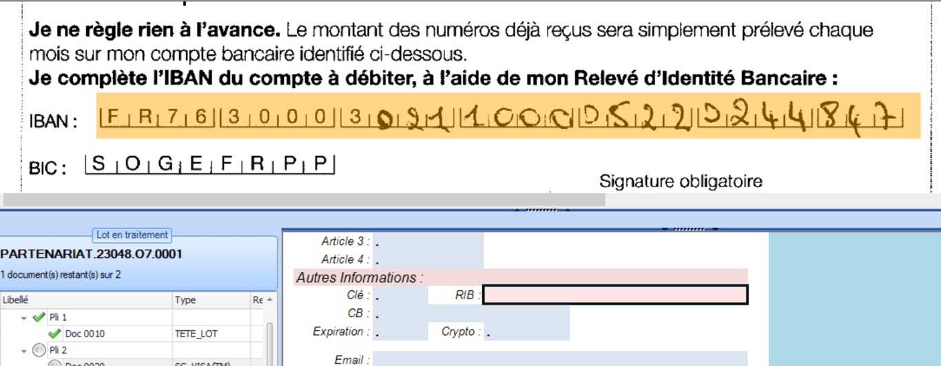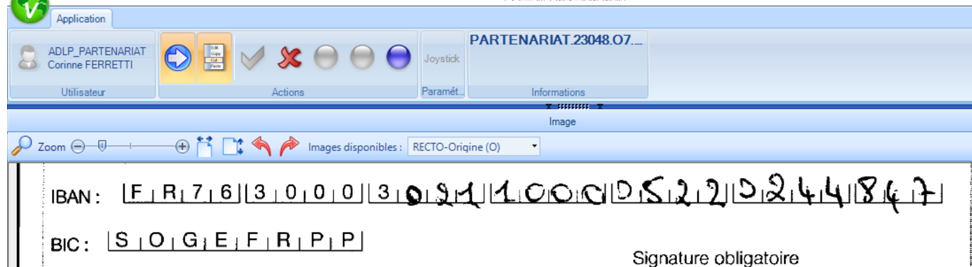 Si la lecture de l’IBAN est difficile, en utilisant la touche F8 l’image de l’archivage apparaît et permet parfois de mieux déchiffrer les écritures du client.