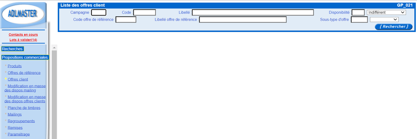 RECHERCHES OFFRES OU MAILINGS SUR ADLMASTER. 14