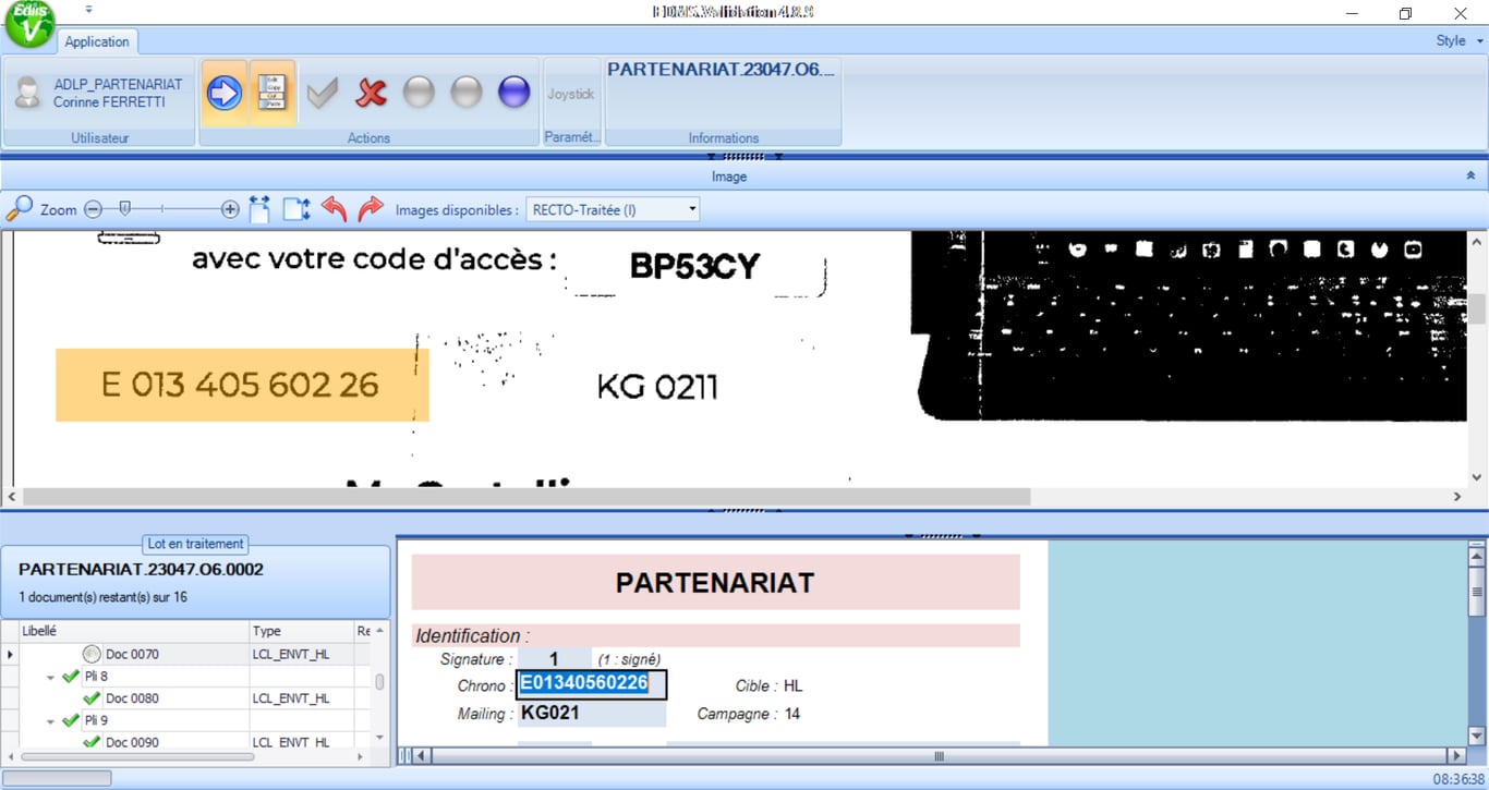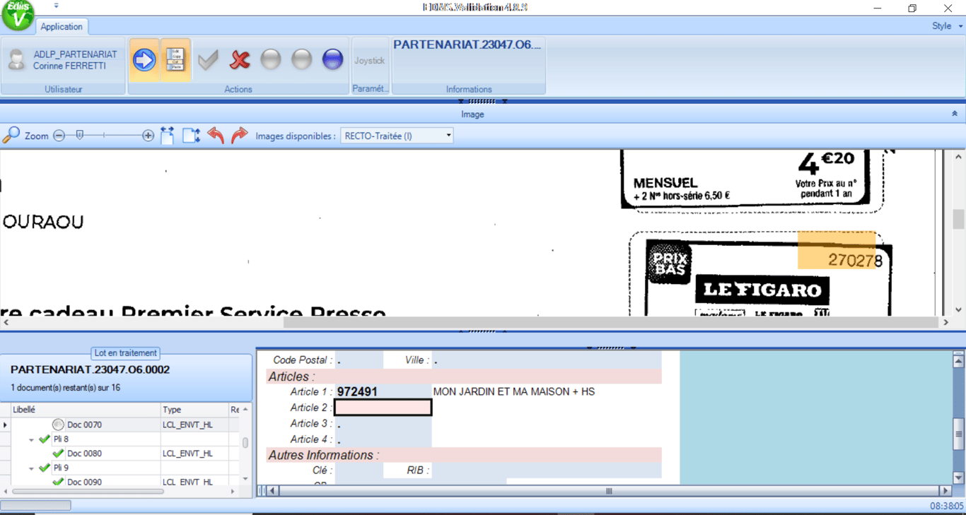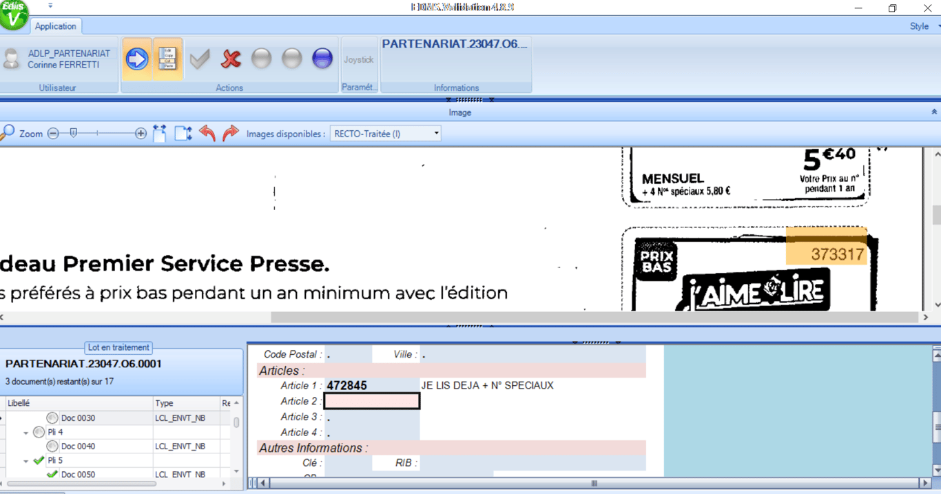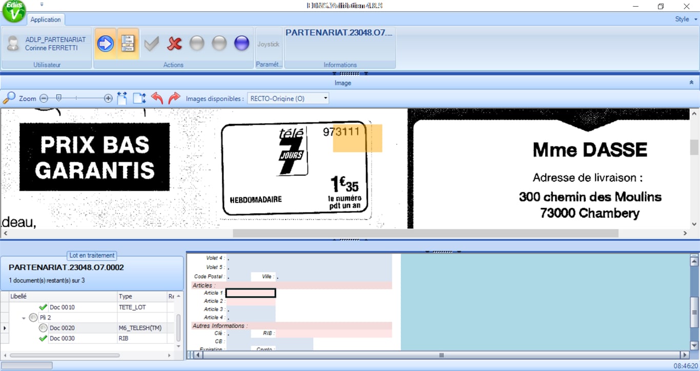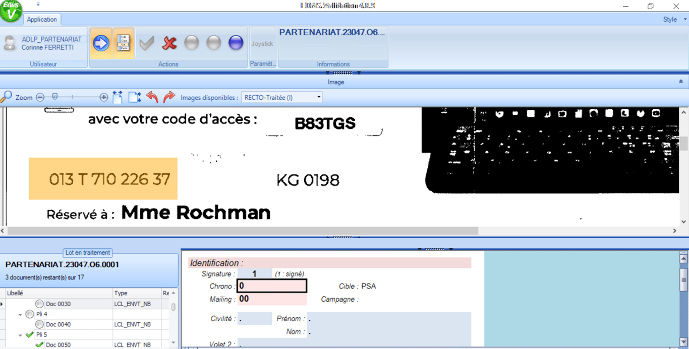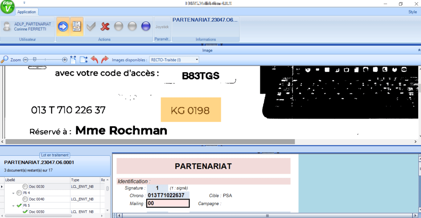 Toutes les zones sont valides, et le document pourra être validé par F4 et passer au pli suivant